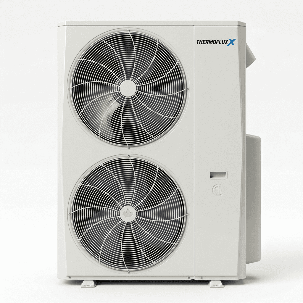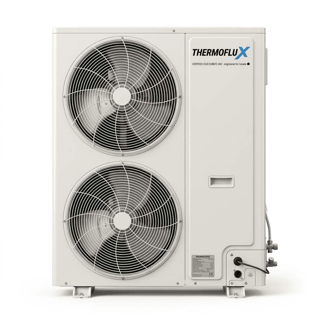 Disclaimer: Product specifications, features, performance data, efficiency ratings, dimensions, and images are provided for general information only and are subject to change without notice. Installation, commissioning, and service must be performed by a qualified, licensed HVAC professional in accordance with applicable codes and manufacturer instructions. Actual performance may vary depending on climate conditions, building characteristics, installation quality, and system configuration. THERMOFLUX is not responsible for damages, losses, or claims resulting from improper selection, installation, use, or maintenance of the product. Always verify current specifications and compatibility before purchase or installation.